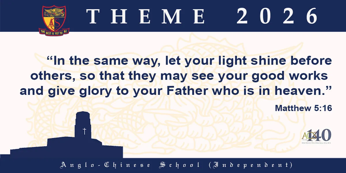 1886年に設立されたAnglo-Chinese School (Independent)は、精神的価値観の強固な基盤、卓越の伝統、そしてグローバルな視野を持つメソジスト系の教育機関です。ACSは教育省管轄の独立校であり、国際バカロレア(IB)ワールドスクールです。学校は2つの学術トラックを提供しています:GCE「O」Levels試験につながる4年間のExpressプログラムと、IBディプロマ・プログラムにつながる6年間の統合プログラム(IP)です。